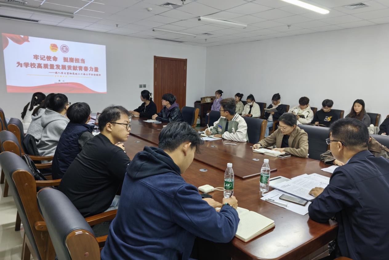 为深入学习贯彻党的二十届三中全会精神,着力提升团学骨干政治素养,校团委于10月23日在薛城校区明理楼331举办党的二十届三中全会精神宣讲暨团属学生组织工作会议。校团委全体成员以及各团属学生组织负责人参加会议。