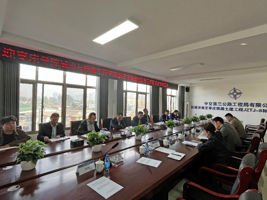 为进一步加强校企合作,促进产学研深度融合,10月25日,城市与建筑工程学院党委书记查明、院长裘娜等一行5人,前往中交第三公路工程局有限公司济枣高铁8标段项目部进行调研交流。中交三公局交通轨道公司副总经理朱大勇、济枣高铁8标段项目部党支部书记李建飞、总工程师王德振等热情接待并进行座谈交流。交流活动由李建飞主持。