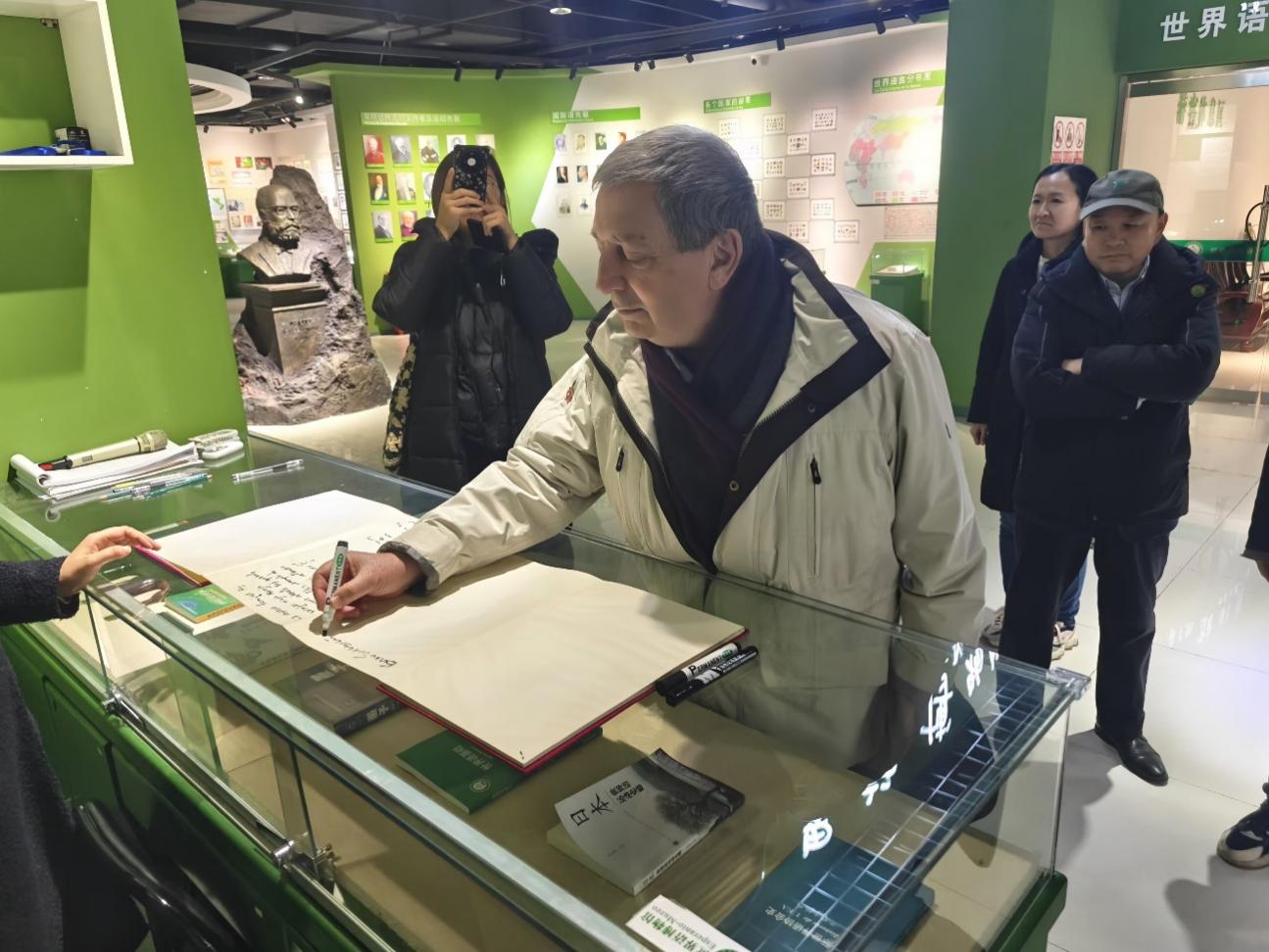 最后,穆扎法洛夫在博物馆的留言簿上留下了热情洋溢的个人感言,他还参观考察了世界语博物馆文创中心。世界语博物馆向穆扎法洛夫教授赠送了《世界语博物馆珍贵藏品图鉴》和今年会官网编著的应用型大学教材《世界语基础》一书。
