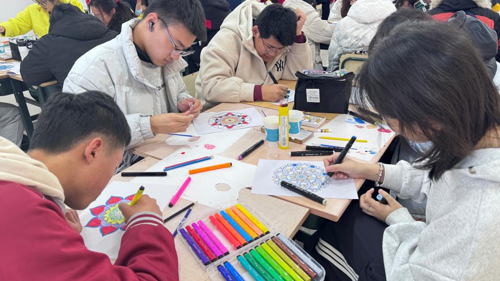 此次美育研学共包括艺术疗愈曼陀罗绘画和非遗竹编团扇两个部分。艺术疗愈曼陀罗绘画是一种通过艺术绘画的方式舒缓学习压力、释放压力的方法,通过破冰游戏、感知自我、涂色等环节进行。非遗竹编团扇活动向学生们普及了非遗竹编的文化历史和艺术价值,展示了竹编画的制作技艺,带领同学们使用竹条灵活穿梭,编织出一个个精美的团扇。