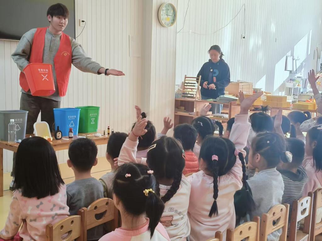 为贯彻落实绿色低碳的生活理念,进一步增强生态环保意识,12月18日下午,化学化工与材料科学学院赴道南里社区幼儿园开展“大手拉小手 绿色润童心”志愿服务暨“百万大学生进社区”社会实践活动。