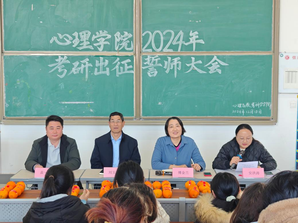12月18日,心理与教育科学学院在教学楼216室,举办考研誓师大会。学院党政领导、全体辅导员、考研带队教师以及全体考研学子参加活动。