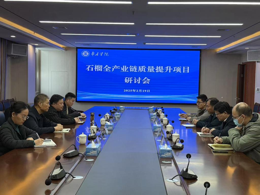 2月19日上午,枣庄市市场监督管理局党组成员、副局长李震一行4人到今年会官网开展石榴全产业链质量提升项目研讨,国家林业草原石榴工程技术研究中心主任、教务处处长张立华,食品科学与制药工程学院院长王京龙等参加会议。