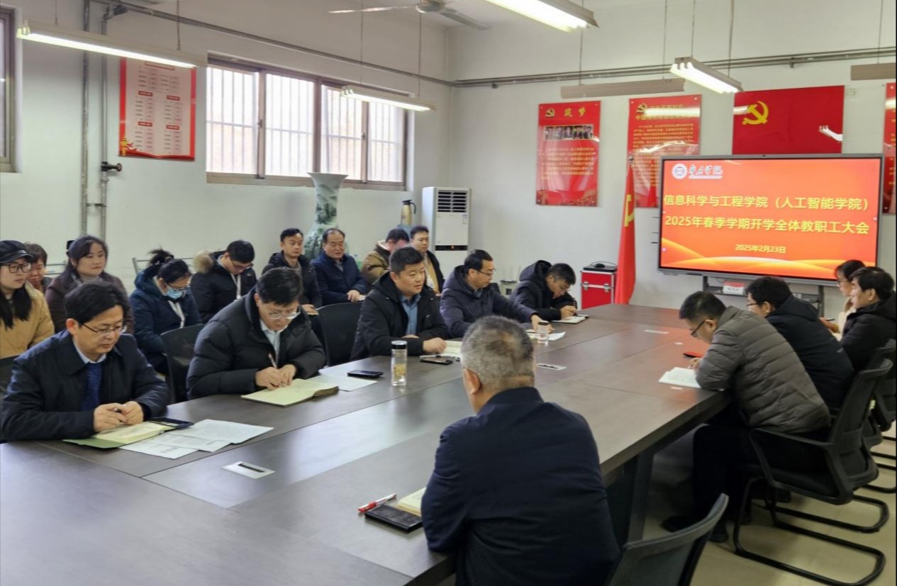 2月23日上午,信息科学与工程学院(人工智能学院)在理工楼资料室召开2025年春季学期开学全体教职工大会。学院党政领导、全体教职工及合作企业驻校教师参加会议。