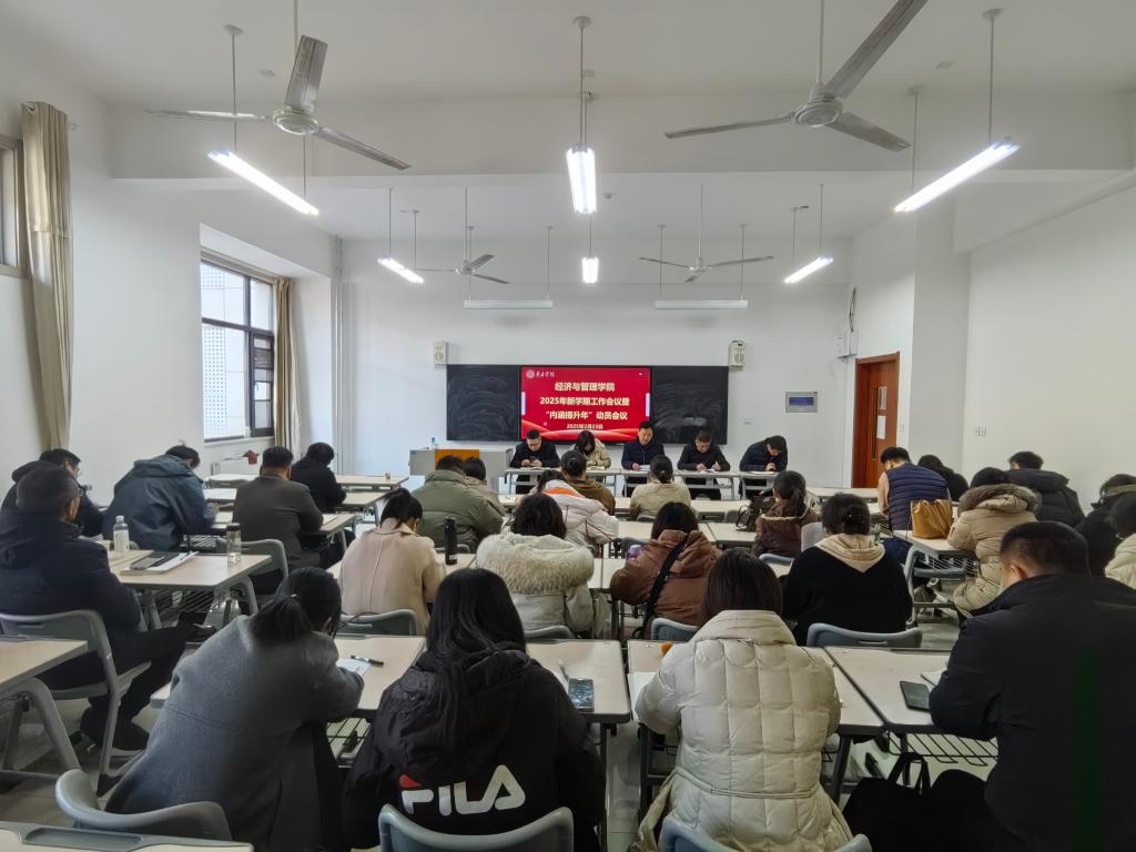 2月23日下午,经济与管理学院在薛城校区豁然楼A317教室召开2025年新学期工作会议暨“内涵提升年”动员会议,凝聚思想共识,激励担当作为。学院领导班子及全体教职工参加会议。