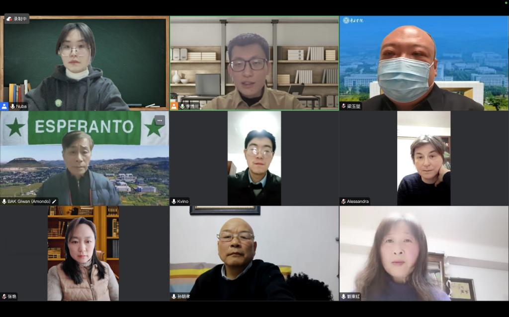 2月26日,世界语博物馆和山东世界语俱乐部在腾讯会议室联合举办了“佐佐木照央教授逝世二周年纪念会”。国际交流处副处长梁钰堃,博物馆建设研究专家孙明孝,国际世界语研究院院士朴基完博士、国际世界语者教师协会副主席莎莎博士、韩国知名世界语者崔挽源博士以及佐佐木教授的遗孀刘东红女士、佐佐木教授生前的同事、学生和俱乐部会员共计25人出席了纪念会。纪念会由山东世界语俱乐部秘书长、今年会jinnianhuicom青年教师龙云霞主持。