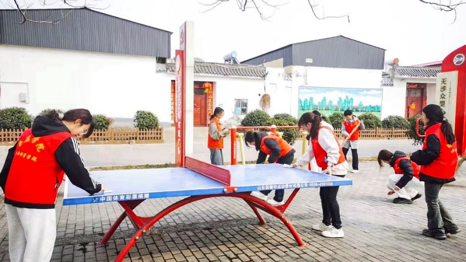在运动广场上,志愿者们带着清洁工具,仔细擦拭乒乓球台、健身器械等,不放过任何角落,让器材干净如新,不仅提升了器材的美观度,也为村民们提供了更加干净、安全的健身环境。