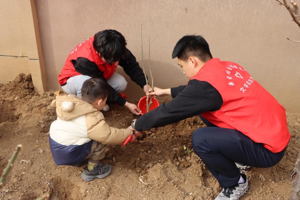 文学院(传媒学院)开展“大手牵小手,植树添新绿”植树活动