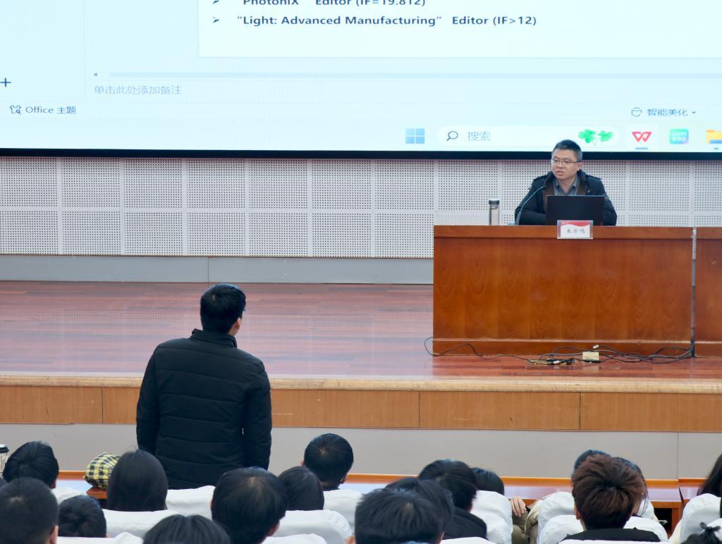 为发挥高层次人才在大学生成长成才过程中的育人效果,进一步帮助学生明确学习目标,科学规划职业生涯,3月17日,光电工程学院在市中校区综合楼报告厅举办“专家有约”专题报告会。本次报告会特邀上海理工大学朱亦鸣教授主讲,光电工程学院400余名师生聆听了此次报告。报告会由学院院长梁兰菊主持。