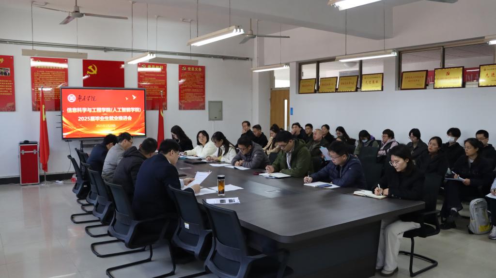 为促进就业工作高质量开展,3月21日,信息科学与工程学院(人工智能学院)在理工楼2121会议室召开2025届毕业生就业工作推进会。学院领导班子、企业驻校经理、论文指导教师、毕业班辅导员及班主任出席会议,会议由学院党委副书记主持。
