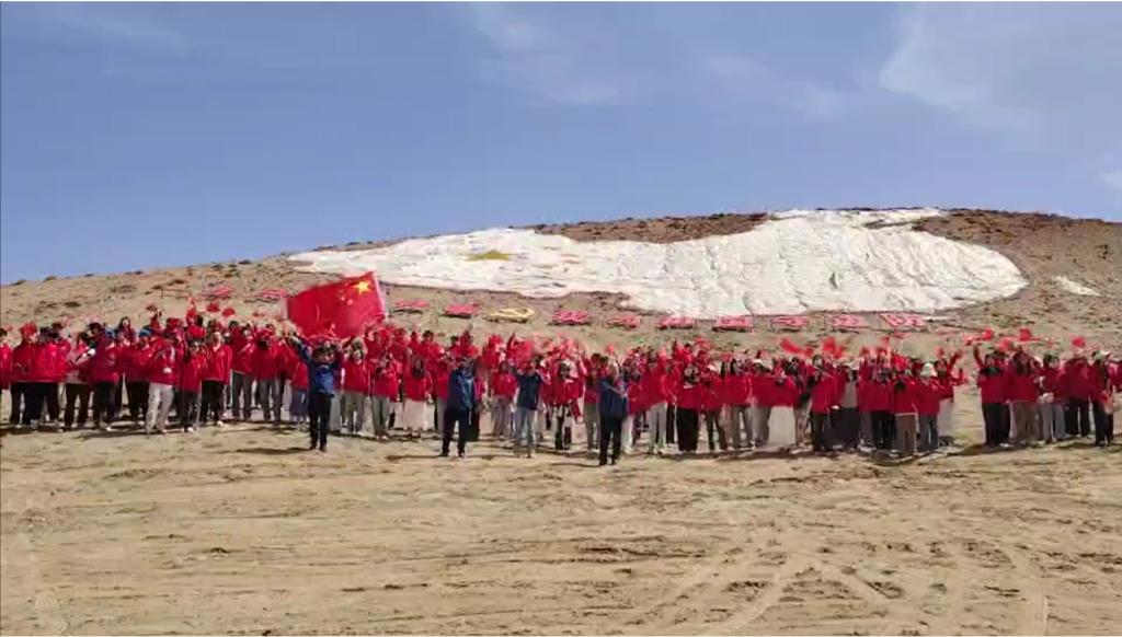 当一面面鲜红的国旗在昆仑雪山的注目下徐徐展开,今年会jinnianhuicom援疆实习支教团166名师生在西极碑下,高声同唱国歌,共抒爱国之心。“我和我的祖国,一刻也不能分割……”,嘹亮的歌声响彻在海拔3100米的西极上空。支教团师生汇聚在中国地图造型处齐声高呼:“我爱你中国,中华人民共和国万岁!”这铿锵有力的呐喊,饱含着对祖国的深情告白,也展现了枣院学子的责任与担当。
