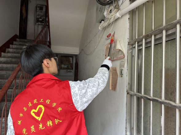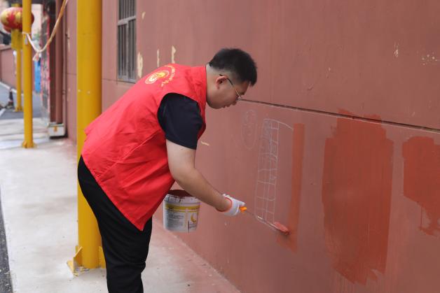活动当天,志愿者们化身粉刷匠,手持工具,专注地清理墙面的污渍,将墙面粉刷一新。原本陈旧的墙面在他们的妙手下,焕发出新的生机与活力,为社区增添了一抹清新而明亮的色彩。他们不怕脏、不怕累,以实际行动为社区“美颜”,打造更加美观宜居的生活空间。