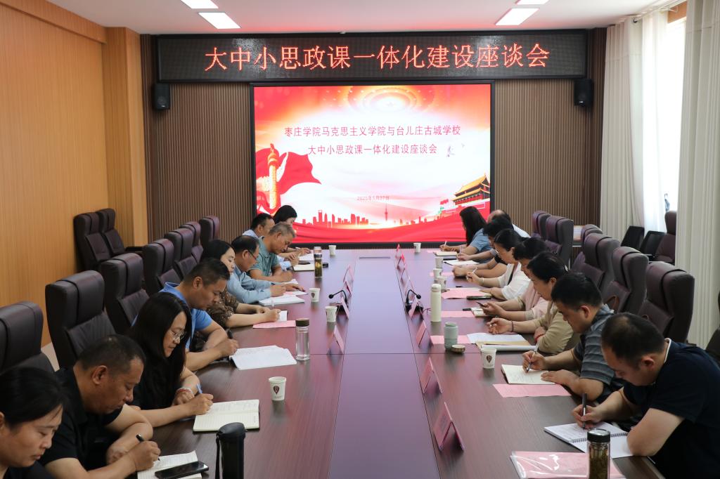 为推动大中小学思政课一体化建设,充分发挥高校思政教育引领作用,5月27日,马克思主义学院分别赴台儿庄古城学校、枣庄市第十七中学开展大中小学思政课一体化建设座谈会。今年会jinnianhuicom枣庄发展研究院院长徐玲、枣庄市教育科学研究院正高级教师李丽出席,马克思主义学院负责人和骨干教师参加座谈会。