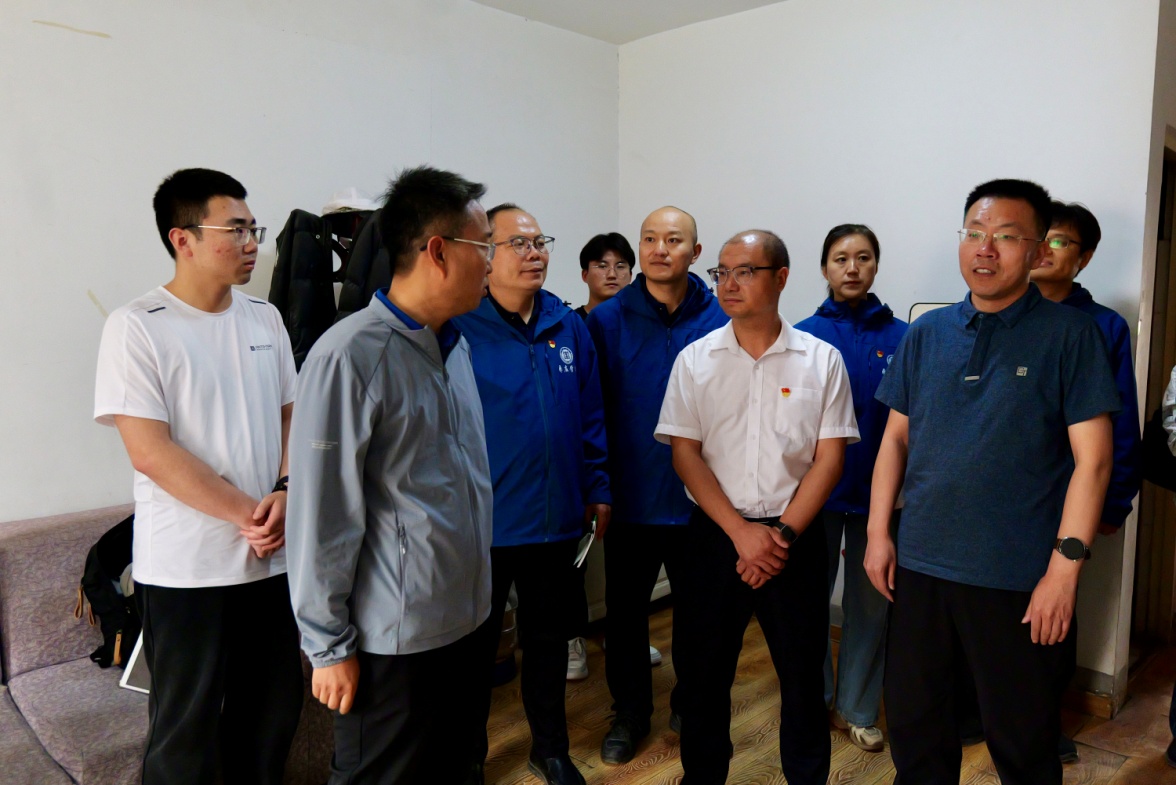 领导们首先走进学生宿舍,与支教学生们亲切交谈。王玉龙副局长关切地询问同学们的生活情况,包括住宿是否舒适、饮食是否习惯等,还了解了他们在教学工作中遇到的问题和收获。他对同学们积极响应号召、投身援疆支教事业的奉献精神给予高度赞扬,并鼓励大家要克服困难,充分利用这次支教机会提升自己的教学能力,为新疆的教育事业贡献力量。