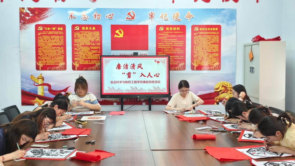 为扎实开展好深入贯彻中央八项规定精神学习教育,激励广大师生以清廉文化启智润心、以高尚道德砥砺品格,6月13日,食品科学与制药工程学院在市中校区文科楼举办“廉洁清风,‘剪’入人心”廉洁主题剪纸活动,共吸引学院40余名师生参与。