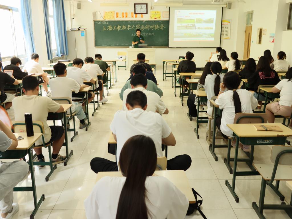 宣讲会上,吴建宝介绍了上海工程技术大学的发展历程、学院特色专业、高水平师资团队、重点实验室建设成果、产学研合作项目以及优秀学子风采等内容,对考研动态趋势、院校专业选择技巧、历年录取数据分析、研究生奖助学金体系、行业人才需求状况、调剂流程与技巧等学生重点关注的问题进行深入剖析,并通过典型案例解析和互动问答环节为在场学子提供有针对性地指导,现场气氛活跃,同学们获益匪浅。