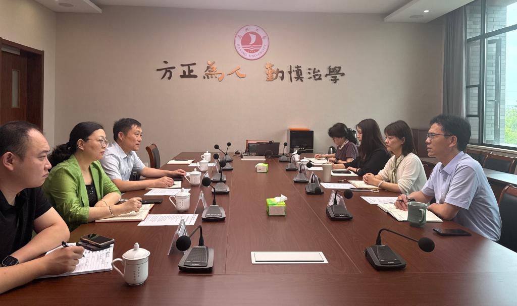为推进硕士点申报和建设工作,促进思政课教学改革,6月23日,马克思主义学院党委书记仝锡文、院长董嫱嫱一行4人到嘉兴大学马克思主义学院进行考察学习。嘉兴大学马克思主义学院院长、红船精神研究中心主任吕延勤,党总支书记宋之霞出面接待。大家一同参观了学院建设发展成果展并进行了座谈交流。