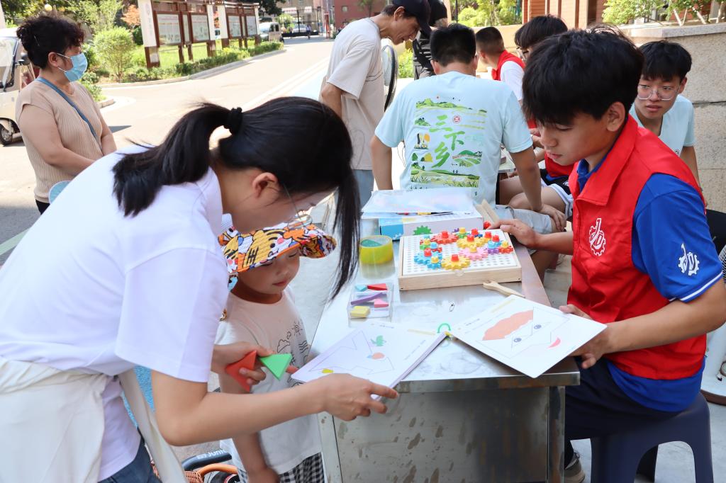 7月4日,服务队来到远航社区富翔庄园党群服务站,继续为社区居民送上服务。他们不仅持续开展家电维修、空调清洗等便民服务,还开设了少儿科普活动。在科普过程中,机械齿轮组装与七巧板活动精彩纷呈,吸引了众多儿童积极参与。孩子们兴致勃勃地动手操作,在实践中探索机械原理,感受传统益智玩具的魅力,欢声笑语回荡在社区上空,赢得了社区居民的纷纷点赞。