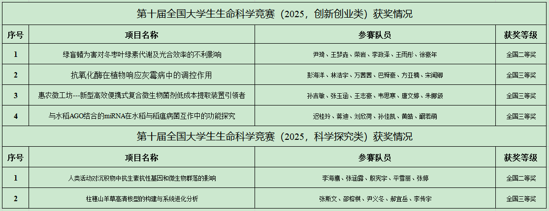 全国大学生生命科学竞赛(CULSC)是教育部认可的57项全国大学生学科竞赛A类赛事之一,该竞赛分为科学探究类和创新创业类两个赛道。本次竞赛要求学生围绕生命科学相关领域的科学问题,开展自主性设计实验或野外调查工作,让学生了解生命科学的发展,寻找解决生命科学问题的有效方法及防控措施,旨在培养大学生的社会责任感、创新意识、团队精神和实践能力,掌握与生命科学领域有关的调查、监测、检验、检疫、诊断、分析、预防和控制的基本实验技术与方法。