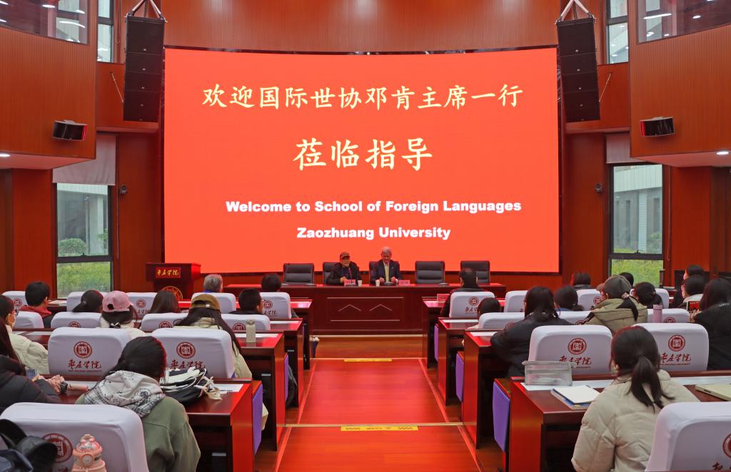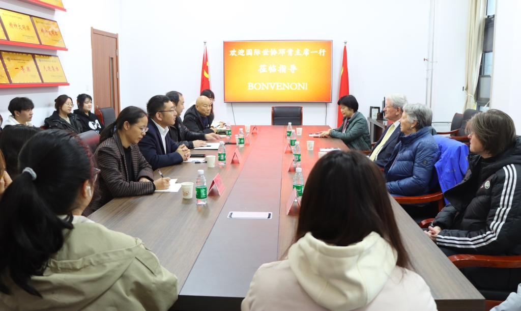 此次交流活动分为两个阶段。第一阶段是与世界语专业的学生进行了一场别开生面的座谈会。在座谈中,学生们分享了学习世界语的心得体会和感受,并就世界语学习、应用和发展趋势等问题向与会嘉宾提问交流。邓肯·查特斯先生和夫人塞西莉教授以及莎莎女士都给予了耐心细致的解答,引导学生深入思考并激发他们学习世界语的热情。