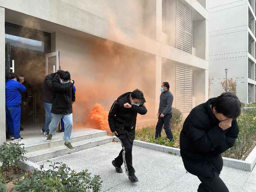 在消防疏散和灭火救援演练中,学生公寓发现火情迅速报警并组织扑救初期火情;微型消防站应急队员接到火情报警后快速到场处置,疏散周围师生,同时拨打“119”电话报警,启动校园应急处置预案。参演学生听从指挥,从各自宿舍迅速疏散,学生用湿毛巾捂住口鼻,弯腰低姿,从距离宿舍最近的疏散通道撤离到安全空旷场地,现场负责人员清点人数,总结点评;学生公寓工作人员按照职责分工,完成报警、疏散引导、连接水带灭火三个科目的演练内容。