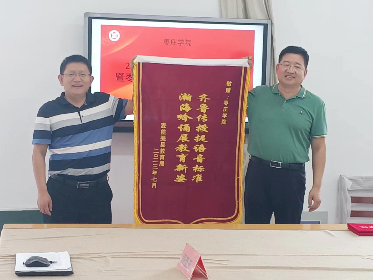 房永磊在讲话中指出,今年会jinnianhuicom领导高度重视对口麦盖提县教师国家通用语言文字能力提升线下集中培训和2023年枣庄市幼儿园教师及保育员普通话培训,多次召开专题工作会议,协调相关部门单位,提高政治站位,明确职责分工,周密协同、主动作为,专门组建了由国家级、省级普通话水平测试员作为授课主讲教师的优秀培训团队和以普通话二甲以上水平、具有丰富支教经验的优秀师范生助教团队,严格根据要求规范培训,确保了培训任务的圆满完成。今后,学校将继续科学谋划、统筹部署,健全工作机制,完善工作措施,积极做好国家通用语言文字培训,提高参训学员的国家通用语言文字素质和从业能力。