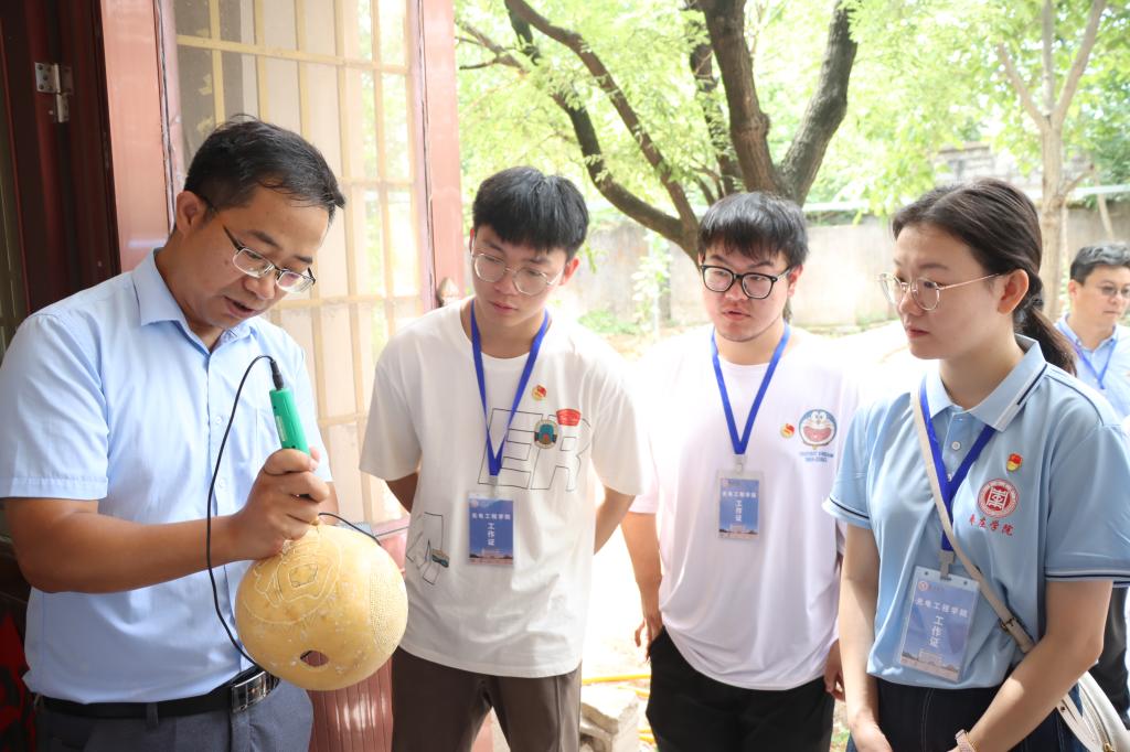 非遗插上科技“翅膀”,“云端”助力乡村振兴。团队参观了山湾人家葫芦雕刻非遗工作室,学习葫芦雕刻的相关知识,了解非遗文化,感受非遗魅力,并结合所学专业,探索将各类灯饰融入到雕刻葫芦内,让非遗“活”起来,让非遗“用”起来。接下来团队准备利用短视频及网络平台向公众推介宣传非遗作品,通过为非遗作品插上科技的“翅膀”,让雕刻葫芦在“云端”与广大群众见面,从而带动乡村发展。