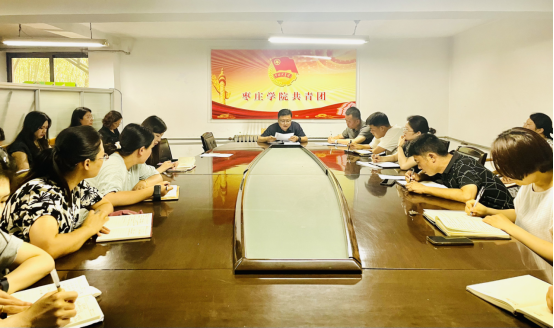 6月29日下午,校团委在行政楼地下会议室召开集体学习会议,团委全体工作人员、各二级学院团总支负责人参加学习会议。