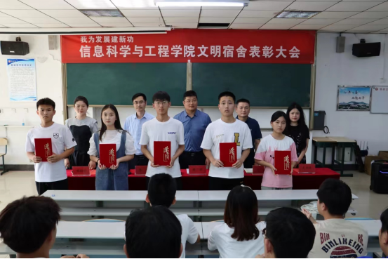 会议宣读了《信息科学与工程学院2022—2023学年第二学期文明宿舍的表彰决定》,与会领导和老师分别为五星、四星、三星文明宿舍和文明宿舍优秀舍长颁发荣誉证书。文明宿舍获奖代表赵致琨、李佳艺先后发言。
