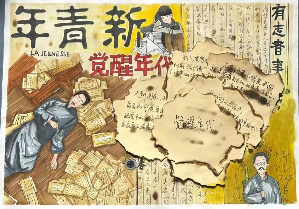 各团支部先后开展了“学团史、争先锋”主题团日、“五四精神”主题书画创作、“五四精神”宣讲活动。其中,主题团日活动包括主题团课、知识问答、分享交流和重温入团誓言四个环节,通过理论学习、演讲、心得分享,观看影片等“沉浸式”教育,引导广大团员青年继承五四精神,坚定理想信念。在主题书画创作活动中,青年学子们以笔为寄、以画寄情,围绕“五四精神”为主题创作书法、插画、海报等艺术作品50余幅。在宣讲活动中,围绕“弘扬五四精神,汲取奋进力量”为主题开展宣讲活动,从五四运动的相关介绍、五四精神的时代内涵等方面进行宣讲,取得到了良好的效果。