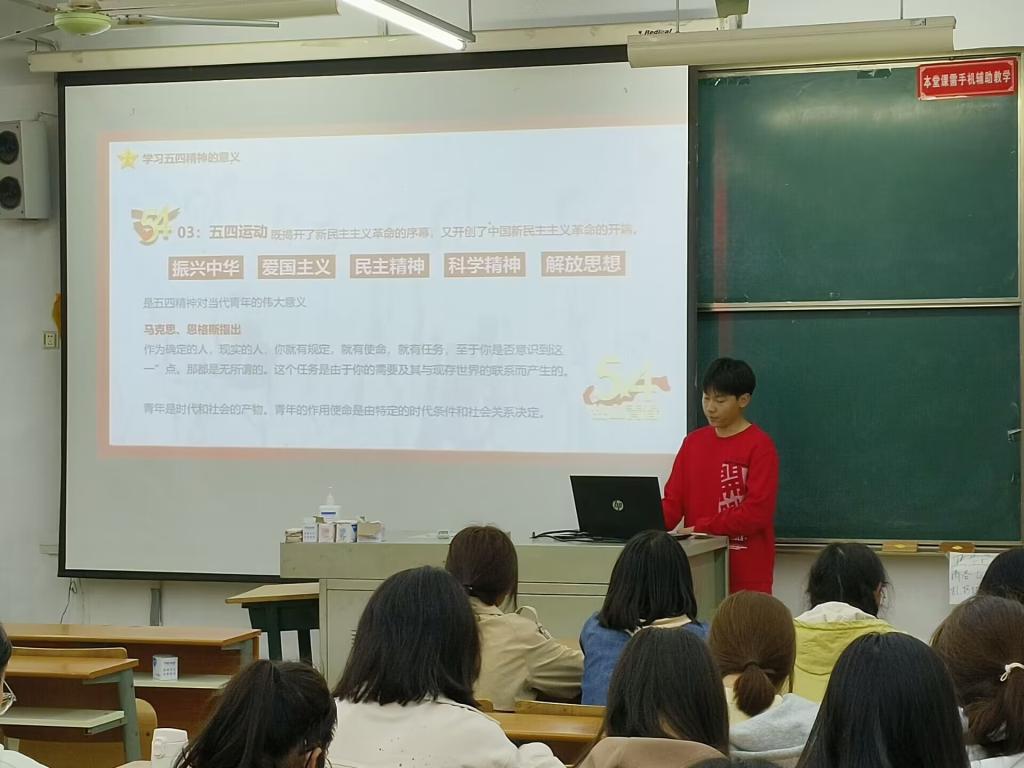 学院还举行了五四青年节座谈会以及“五四青年说”主题微团课展示。座谈会上,青年团员围绕个人成长、学习经历,谈思想、谈学习、谈体会、谈打算、谈建议,充分展现了青年学子在新时代的新担当、新作为。同时青年学子以微团课的形式从不同角度讲述五四运动的过程,感悟百余年前青年的爱国之情和报国之志,激励新时代中国青年以奋发有为的姿态与时代主题同向同行,与家国情怀同频共振。
