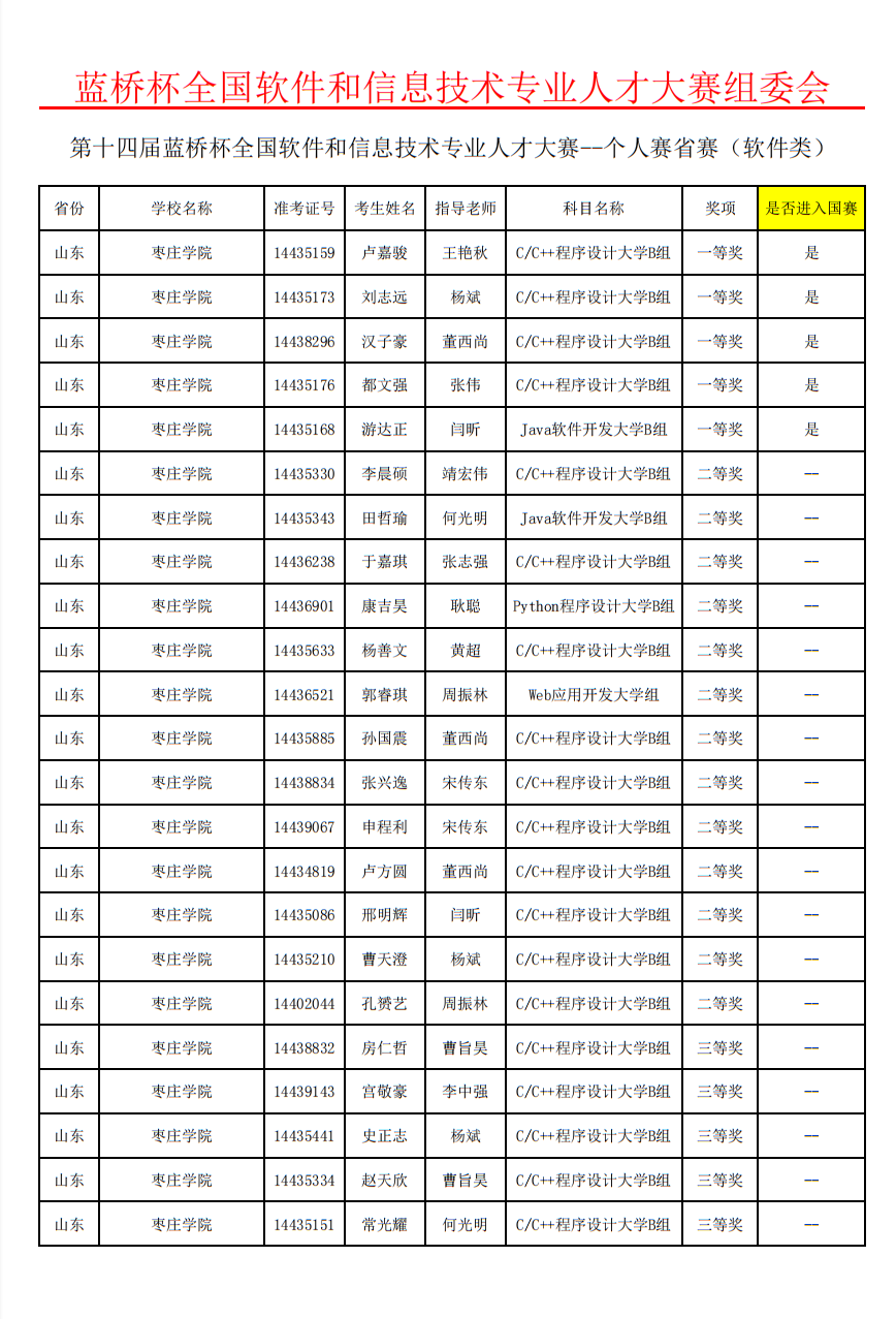 近日,第十四届“蓝桥杯”全国软件和信息技术专业人才大赛——个人赛省赛(软件类)结果公布。今年会官网信息科学与工程学院、人工智能学院的33名学子喜获佳绩,其中一等奖5名、二等奖13人、三等奖15人。