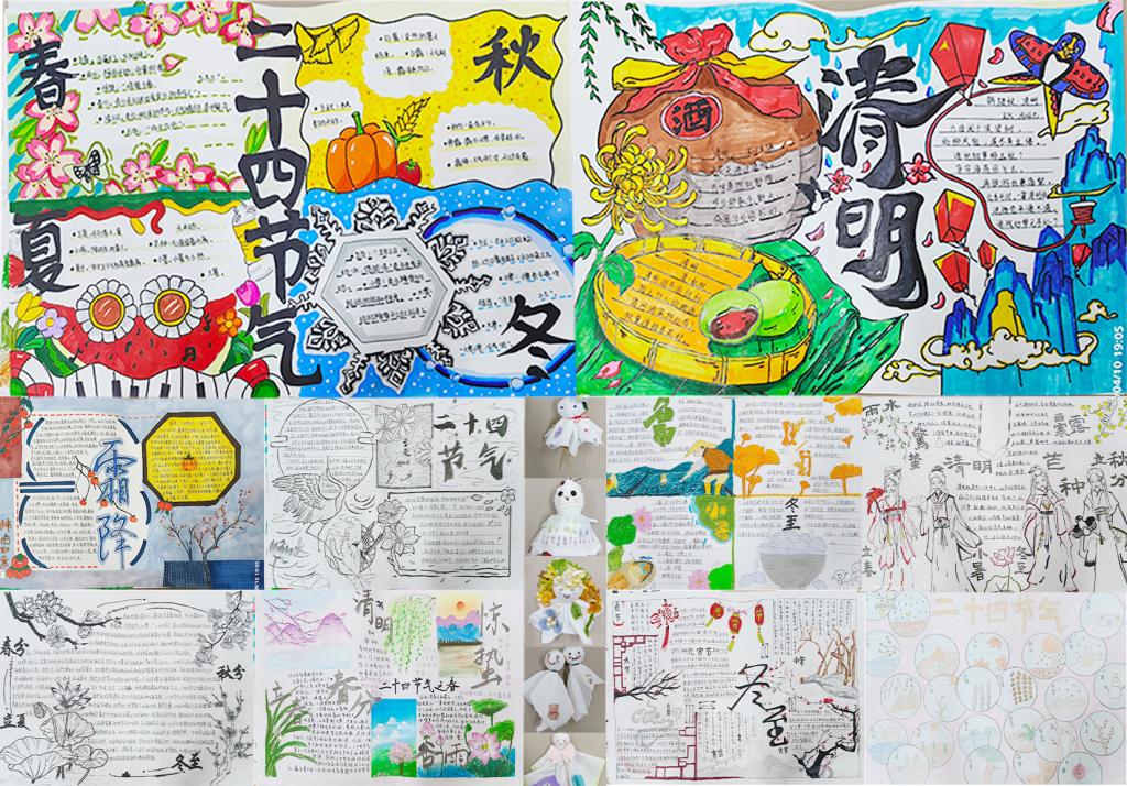 同学们发挥自己的创造力,巧妙运用日常材料手工制作独特新颖、具有艺术感的晴天娃娃,共有作品29份。通过评审,作品《白露》和《四季》荣获“晴天娃娃”设计一等奖。在手抄报制作大赛中,同学们用一笔一画勾勒出传统的节气风景,用绚丽的色彩吸引大家了解二十四节气,提升文化自信,共收取活动作品40份。通过评审,作品《传承二十四节气》和《二十四节气手抄报》荣获一等奖。
