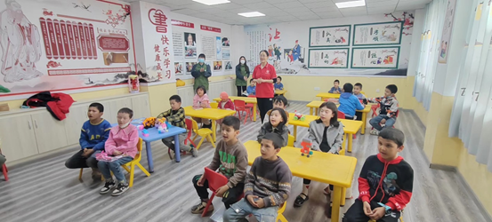 一曲可爱的“兔子舞”将活动推入高潮,整个教室气氛温馨、活跃、激动人心又其乐融融,孩子们收获了成长,家长们收获了童真,支教大学生们也得到了锻炼。活动结束后,社区主任古丽加马丽给孩子们颁发了精美的奖品。