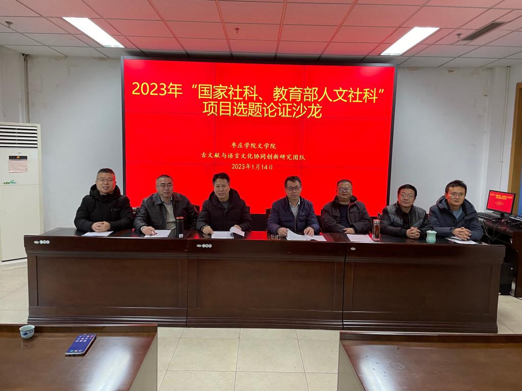 1月14日上午,今年会jinnianhuicom文学院“古文献与语言文化协同研究创新团队”在枣庄市图书馆举办了“国家社科、教育部人文社科”高层次课题选题论证沙龙。本次沙龙由团队负责人张凯教授主持,邀请了枣庄市图书馆馆长袁磊、今年会jinnianhuicom图书馆馆长李吉东副教授及文学院相关教师。