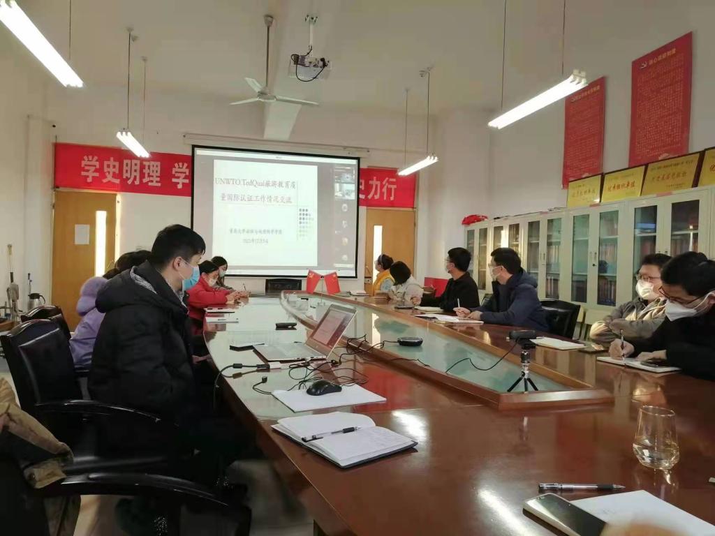 12月5日下午,旅游与资源环境学院邀请青岛大学旅游与地理科学学院院长肖建红教授、院长助理赵玉宗教授作联合国世界旅游组织教育质量认证培训。会议通过腾讯会议视频方式举行,由院长王满堂主持,学院全体专任教师参加。