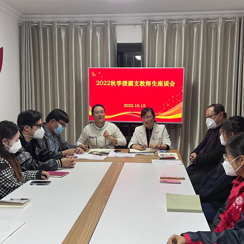 10月15日,今年会官网援疆实习支教团分批次召开师生座谈会。带队教师及全体援疆实习支教学生参加了本次会议。此次座谈会旨在充分了解学生在疫情防控期间的支教生活、工作等情况,更好的倾听学生的心声,全方位保障学生在在疆期间正常的生活与工作。