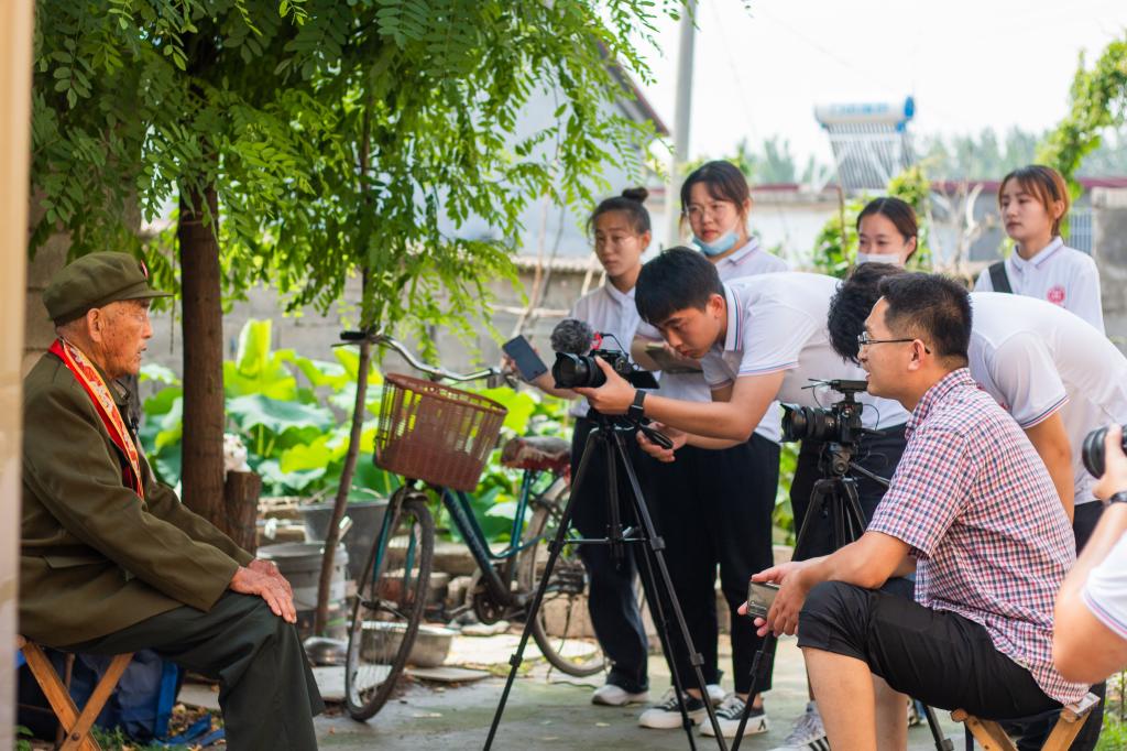 在峄城区大刘庄村,团队走访、慰问了抗美援朝老兵邢成友,用镜头记录了这位88岁老兵早年参加抗美援朝、历经硝烟弥漫的战场,在枪林弹雨中浴血奋战,2020年又投入了抗击疫情战场的的红色故事。同学们深深体会到了“一朝戎装穿在身,终生流淌英雄血”的红色精神。