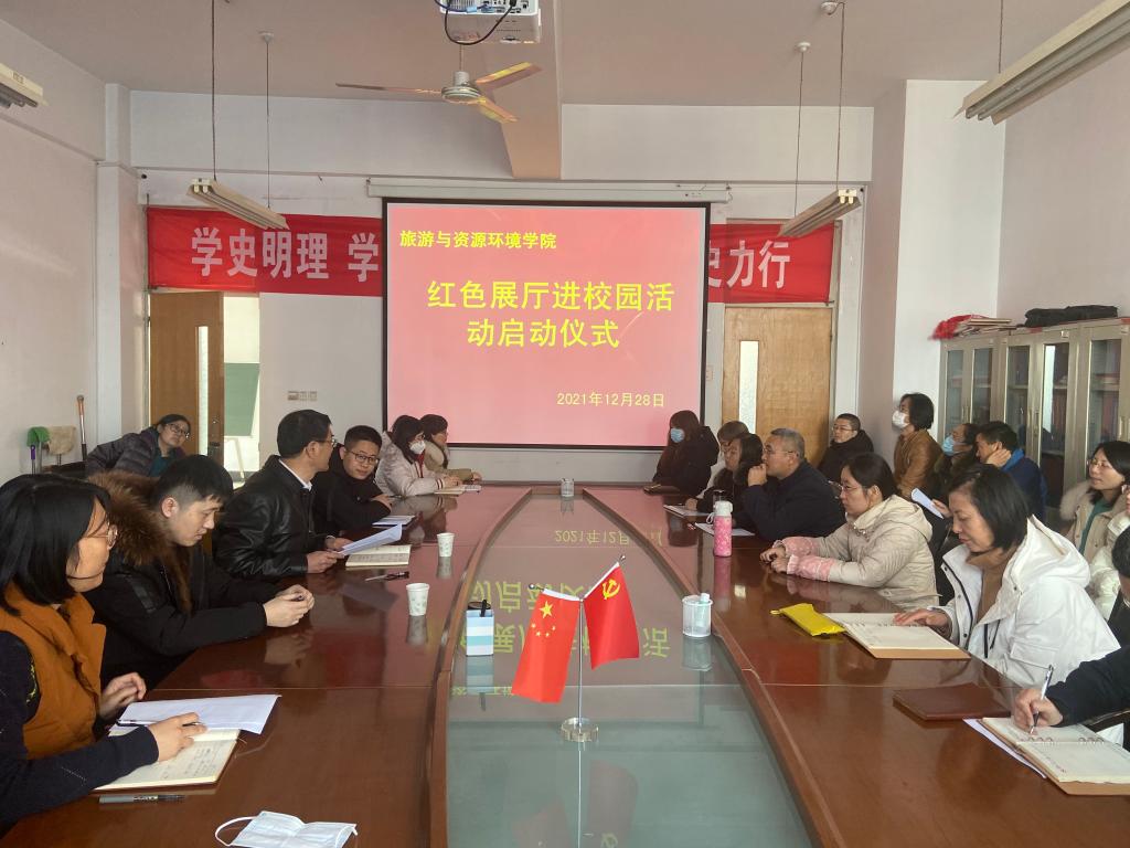 为传承红色基因,弘扬伟大建党精神,12月28日上午,旅游与资源环境学院在理工楼2514会议室启动“红色云展厅”进校园活动。学院党政领导、全体教工参加启动仪式。