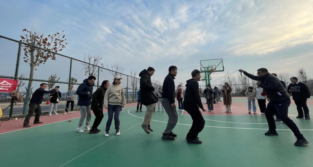 本次趣味运动会以“美院同心,健康同行,趣享快乐”为主题,共设置了花样接力、齐心协力、摸石头过河、环环相扣、同心鼓和集体跳绳等6个项目,项目设计既有趣味性又突出集体参与性。比赛过程中,大家积极踊跃,使出浑身解数,奋勇争先,气氛和谐,用行动诠释“我运动、我快乐”的理念。虽已入冬,但老师们丝毫没有感受到寒意,活动整个过程不时爆发出欢声笑语,不少学生也纷纷跑来为老师们加油助威,现场热闹非凡,呈现出一派欢乐祥和的景象。