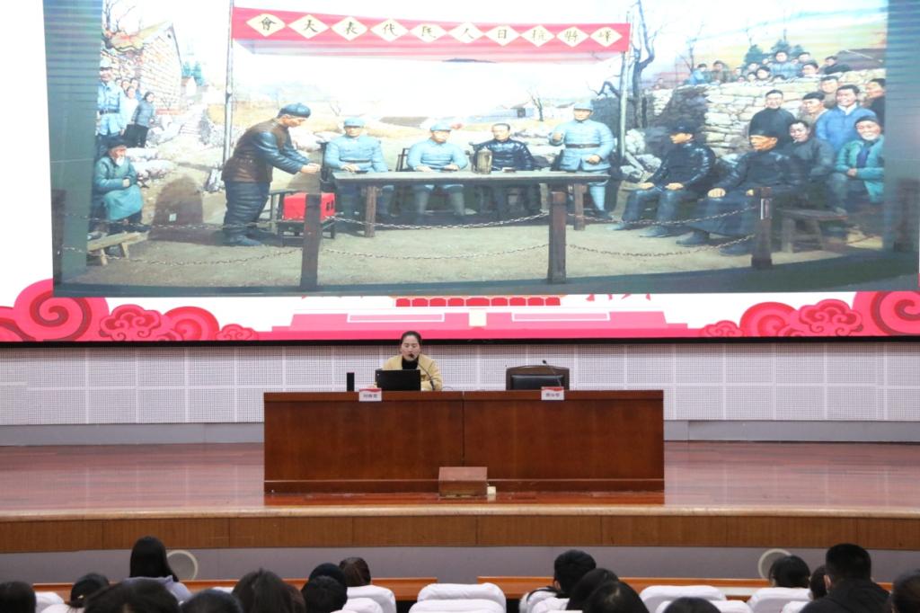11月28日,学校组织部邀请山亭区抱犊崮—王家湾党性教育基地主讲人刘慎莺来校举办“党性教育基地进高校”活动。学校各二级学院学生党员、发展对象、入党积极分子、主要学生干部代表等参加。