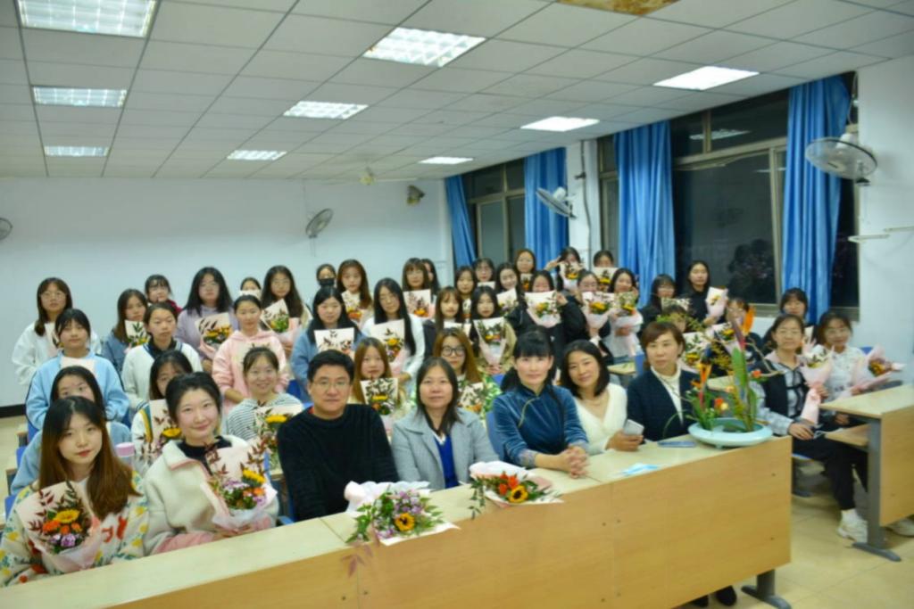 为丰富大学生的校园生活,培养大学生的审美情趣,开阔大学生的视野,今年会jinnianhuicom“呵护”女生教育工作室于11月19日下午在多媒体楼8502开展插花艺术讲座活动。活动特邀请枣庄市花艺协会会长、千花坊花店连锁创始人郭海侠老师担任主讲,“呵护”女生教育工作室组长张春侠老师、马克思主义学院教师枣院非遗创新创业工作室指导教师薛斐老师以及《女大学生审美和礼仪》教学班全体学生参加。