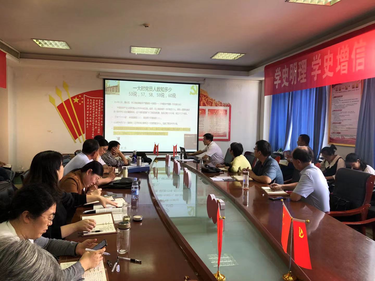 党课围绕中国共产党成立时全国58位党员的人生发展轨迹、参加中国共产党“一大”13位代表的人生归宿分析、中国共产党为什么能、马克思主义为什么行等方面进行讲述。