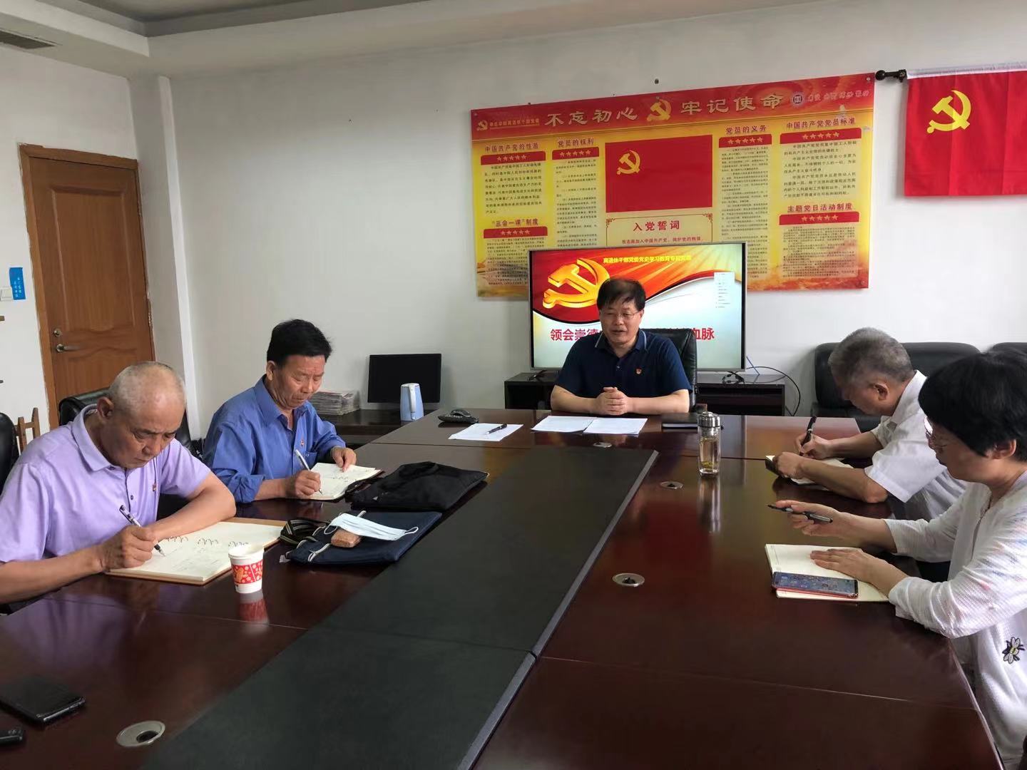 6月25日上午,离退休干部党委在综合楼1019会议室开展“学史力行”专题学习研讨会。离退休干部党委书记郑付海主持会议,党委领导班子、党支部书记、离退休工作处全体成员参加会议。