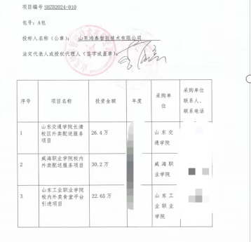 A包:山东鸿泰智能技术有限公司业绩如下