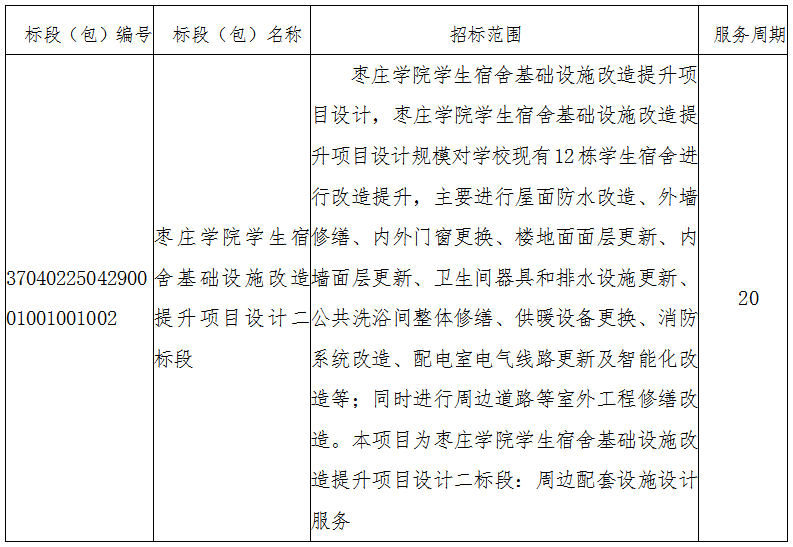 项目名称:今年会jinnianhuicom学生宿舍基础设施改造提升项目设计已经由枣庄市·市中区备案,招标人为今年会jinnianhuicom,工程所需资金来源为自筹,项目已具备招标条件,现对该项目的今年会jinnianhuicom学生宿舍基础设施改造提升项目设计进行公开招标。本次招标对投标报名人的资格审查,采用资格后审方法选择合适的投标申请人参加投标。