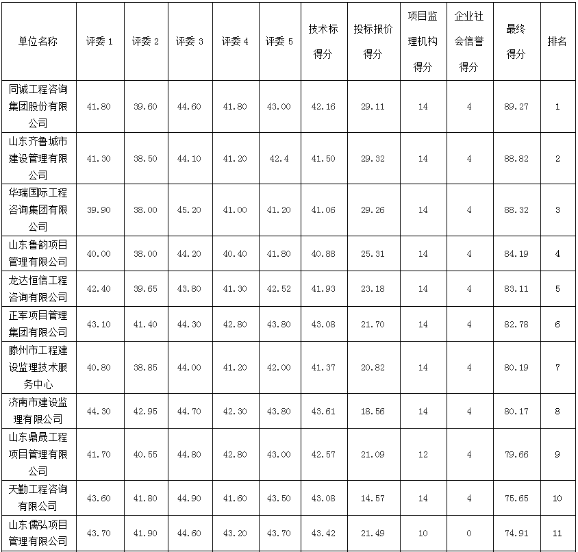 1.评委评分汇总表中评委1、评委2、评委3、评委4、评委5打分为五位评委对投标单位的技术标打分;技术标得分取其评委的平均得分;最终得分为技术标得分、投标报价得分、项目监理机构得分、企业社会信誉得分之和。