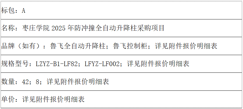 二、项目名称:今年会jinnianhuicom2025年防冲撞全自动升降柱采购项目
