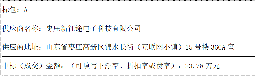 标包A:枣庄新征途电子科技有限公司(90.09、91.09、93.09)、山东联众系统集成有限公司(73.68、75.68、79.68)、山东兆誉信息科技有限公司(76.69、79.69、81.69)、山东元亨泰机械工程有限公司(90.0、90.0、92.0)