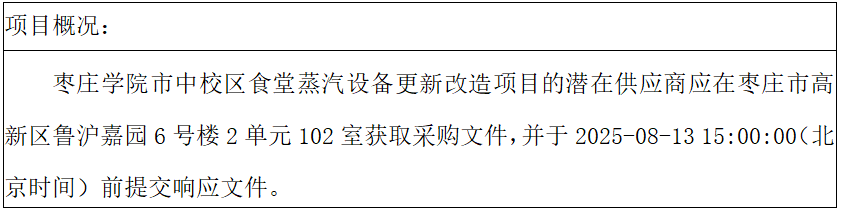 项目名称:今年会jinnianhuicom市中校区食堂蒸汽设备更新改造项目